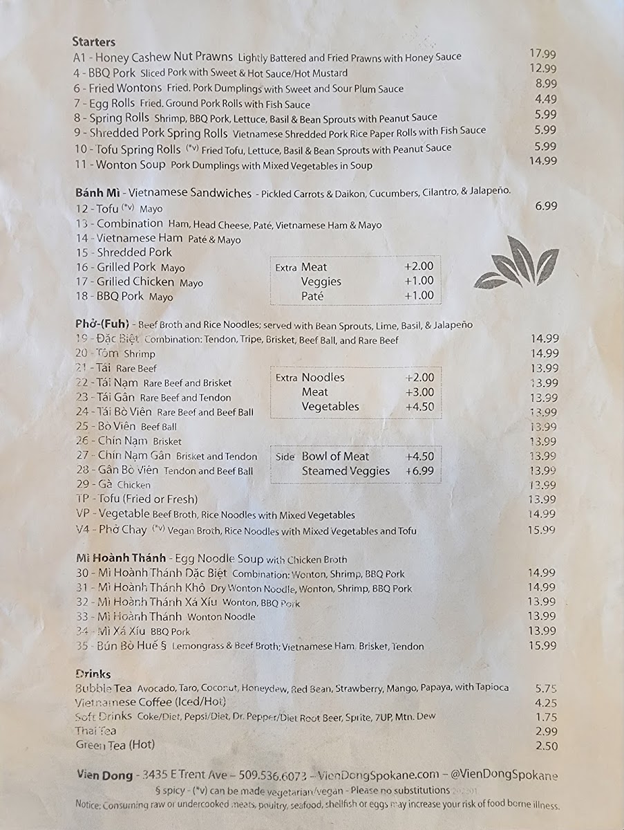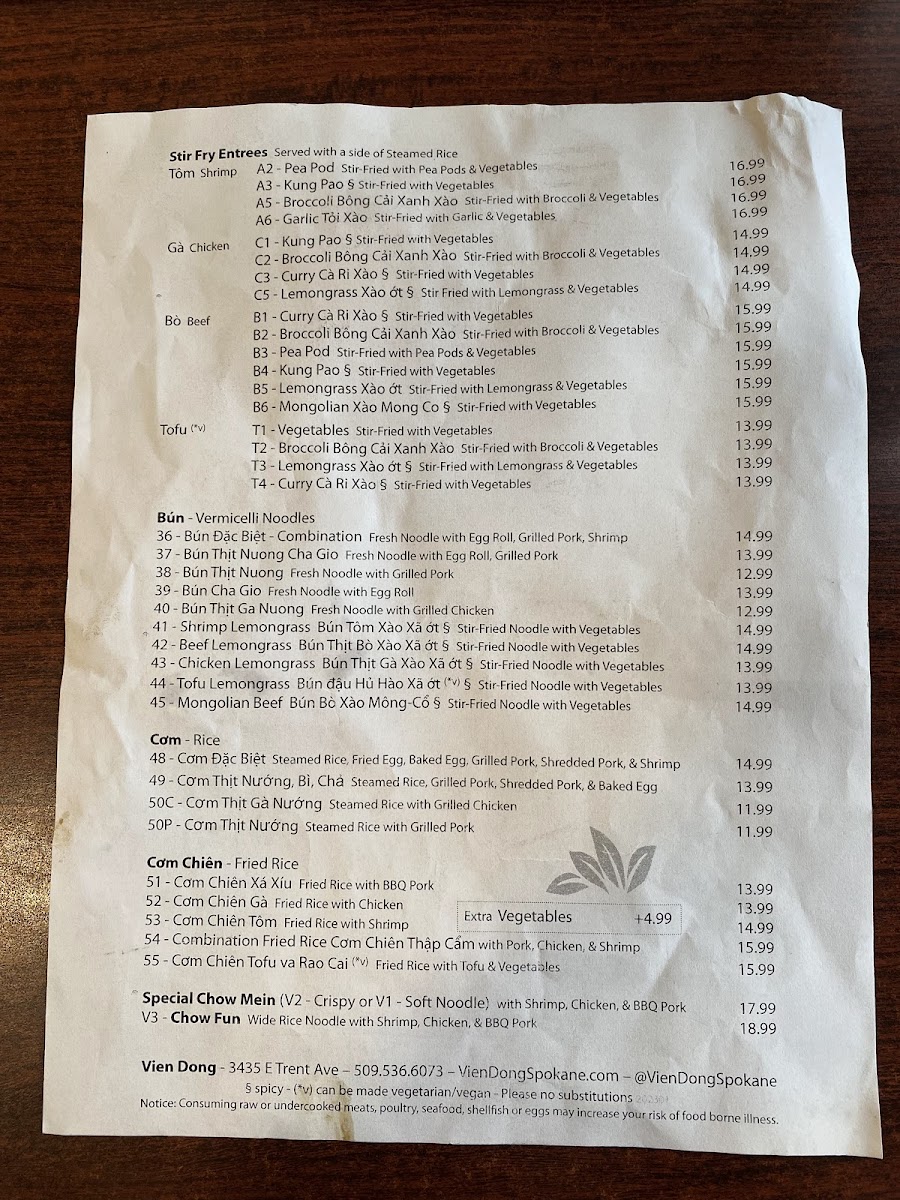 If you're on the lookout for an authentic taste of Vietnamese cuisine in Spokane, look no further than Vien Dong Restaurant. Nestled at 3435 E Trent Ave, this gem brings the lively and aromatic flavors of Vietnam right to your plate, offering locals and visitors a delightful culinary experience that’s hard to forget.